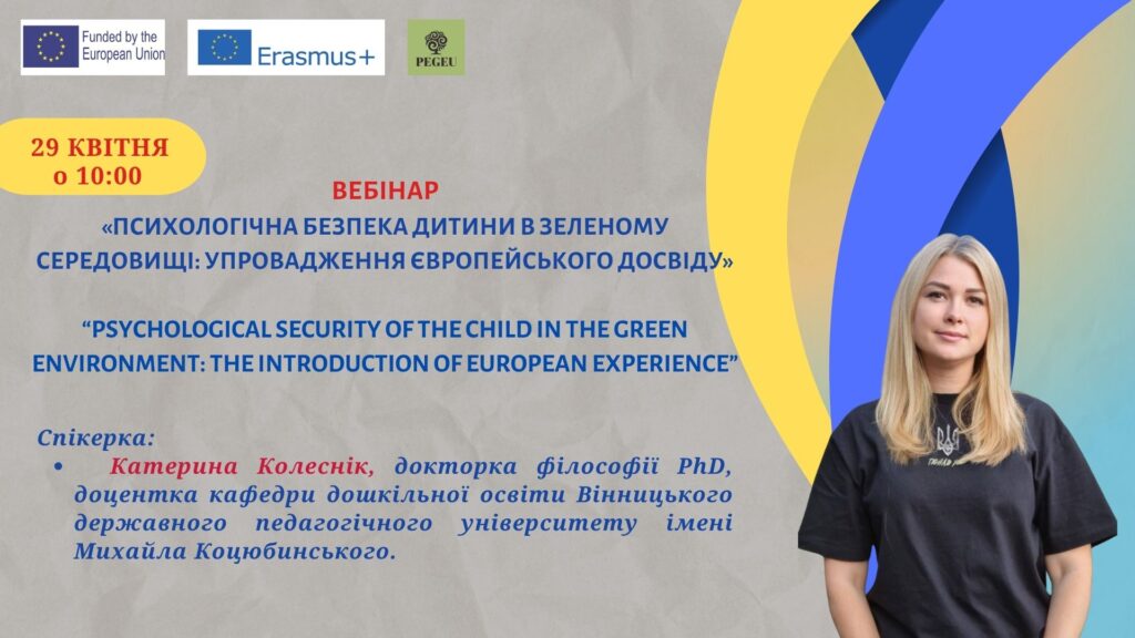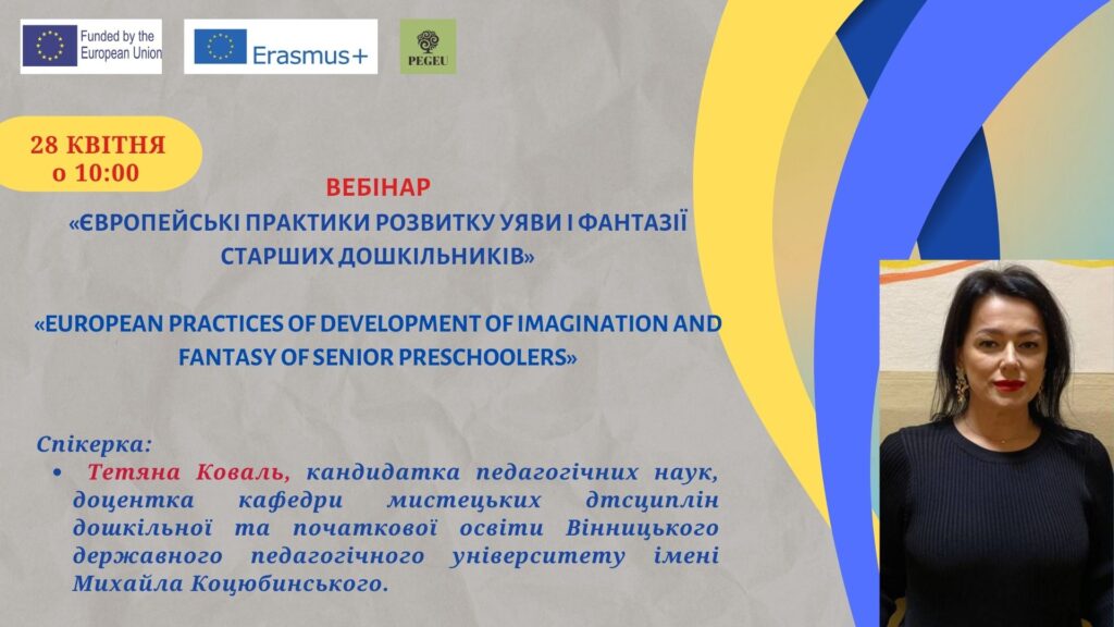 Популяризація проєкту на ВСЕУКРАЇНСЬКІЙ НАУКОВО-ПРАКТИЧНІЙ КОНФЕРЕНЦІЇ З МІЖНАРОДНОЮ УЧАСТЮ «АКТУАЛЬНІ ПРОБЛЕМИ МИСТЕЦЬКОЇ ПІДГОТОВКИ МАЙБУТНЬОГО ВЧИТЕЛЯ» (ІХ школа методичного досвіду). На конференції висвітлювались особливості реалізації проєкту ЕРАЗМУС+ (МОДУЛЬ JEAN MONNET) PEGEU – 101085248 – ERASMUS-JMO-2022-MODULE «Preschool education in a green environment: the synergy of European practices and Ukrainian traditions». Зокрема, учасникам конференції були презентований досвід країн Європи у використанні мистецтва в роботі з дітьми та прийоми роботи зі здобувачами вищої освіти ВДПУ в контексті факультативної дисципліни.